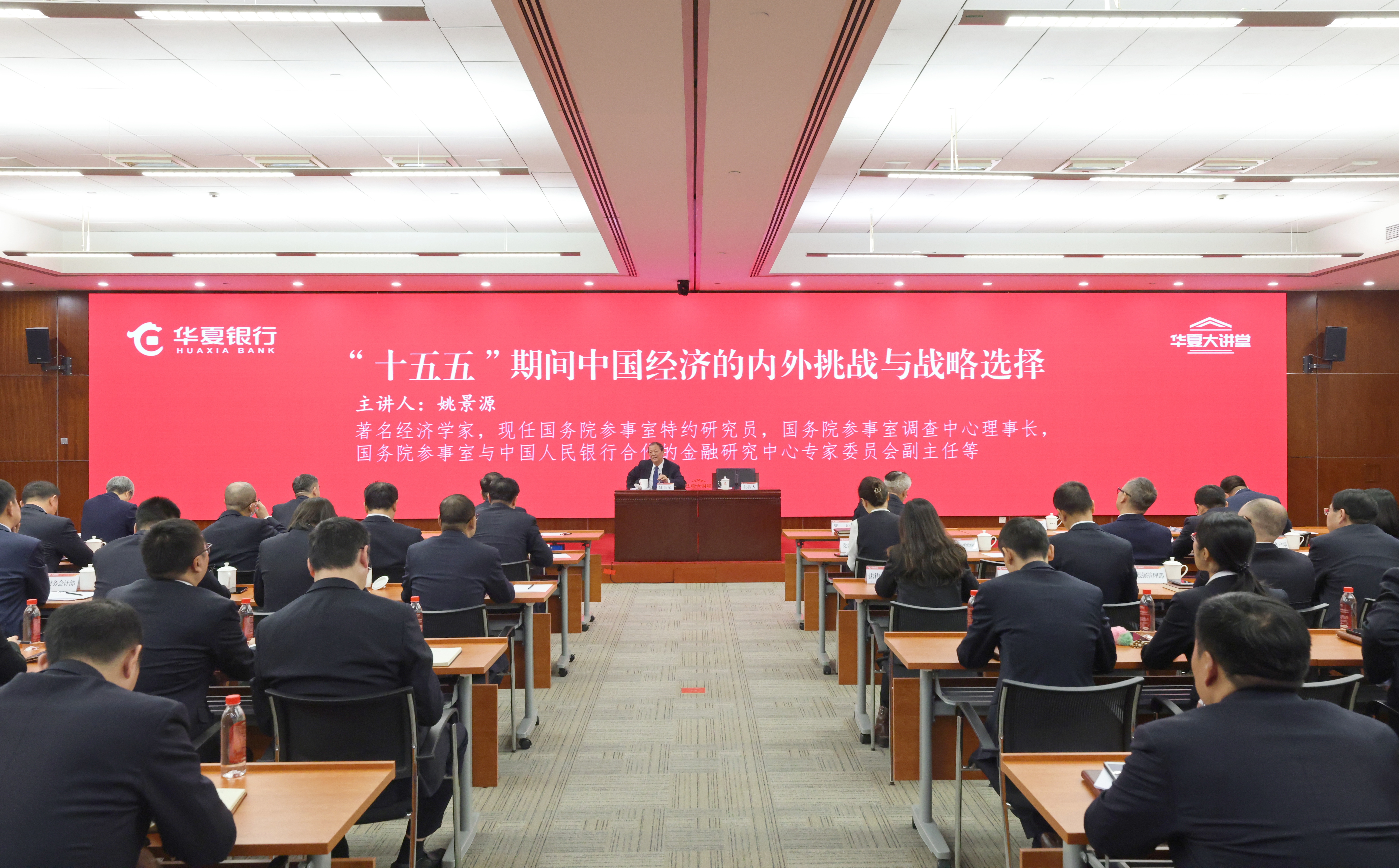 为了深入学习贯彻中央经济工作会议精神,准确把握、全面落实新形势下党中央对经济工作的要求部署,12月22日,华夏银行举办2025年第二十四期大讲堂,邀请著名经济学家,国务院参事室特约研究员、国务院参事室调查中心理事长姚景源,以“‘十五五’期间中国经济的内外挑战与战略选择”为题开讲,行长瞿纲主持。